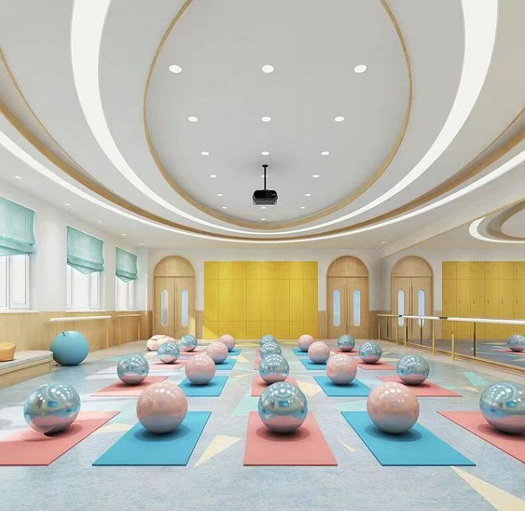 同时,塑胶地板丰富的色彩和多样的纹理选择,为瑜伽房的空间设计增添了更多可能性。柔和淡雅的色调,能够营造出宁静、平和的氛围,契合瑜伽追求内心平静的理念;独特的纹理设计,则为瑜伽房增添了艺术感和个性化元素。无论是简约现代风格,还是自然禅意风格的瑜伽房,都能通过塑胶地板的搭配,实现理想的空间效果。